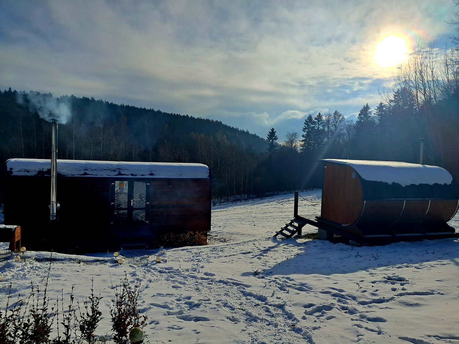 Maringotka Vám poskytne co největší pohodlí. Je vybavena jednou velkou postelí pro dvě osoby a jednou menší postelí pro jednu osobu. Lze přidat na velkou postel lůžkoviny pro 3. osobu. K dispozici také máte kuchyňskou linku, včetně indukční varné desky a lednicí s mrazákem. Medové pochoutky si můžete vychutnat u jídelního stolu, který je u vchodu nebo venku pod zahradní pergolou s posezením, lehátky a grilem. Dřevo a dřevěné uhlí máte vždy k dispozici. Ve včelíně se nachází malá, ale útulná a plně vybavená koupelna se sprchovým koutem, WC a umyvadlem. Cca 100 metrů pod včelínem se nachází rybník, kde lze po dohodě lovit ryby.