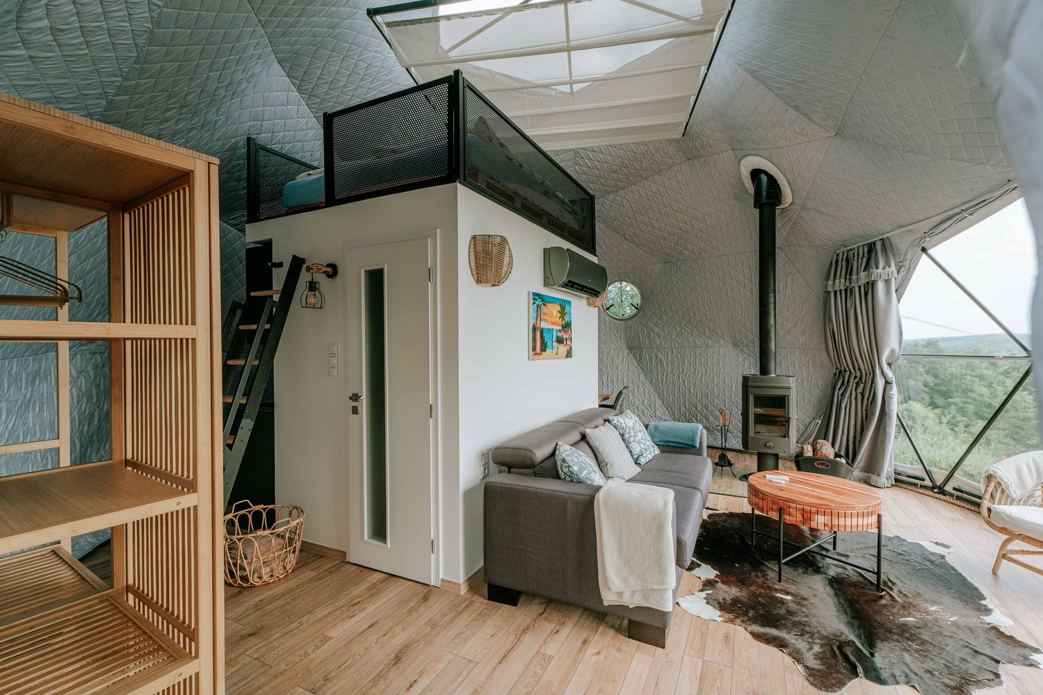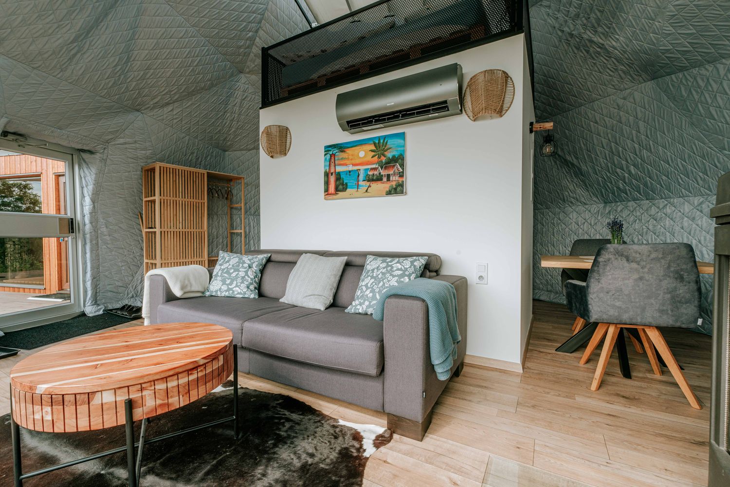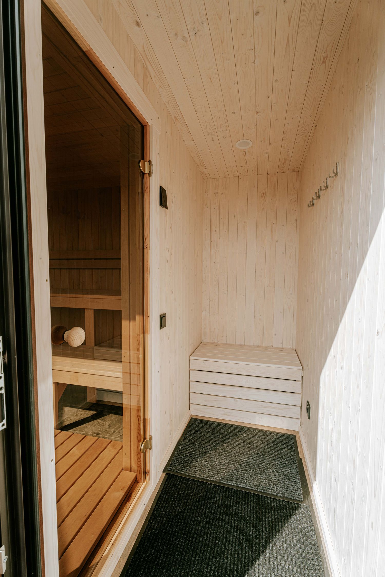 Uvnitř najdete pohodlné vybavení, plně vybavenou kuchyňku a moderní koupelnu pro váš maximální komfort. Po celý den můžete relaxovat v naší vířivce nebo sauně, které jsou k dispozici pro vaše pohodlí a relaxaci.