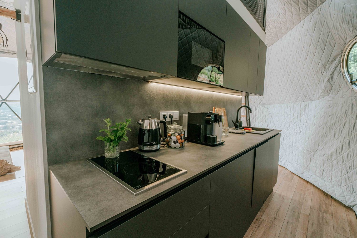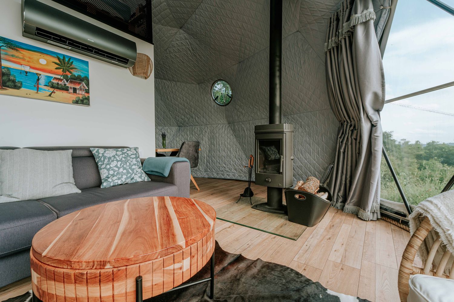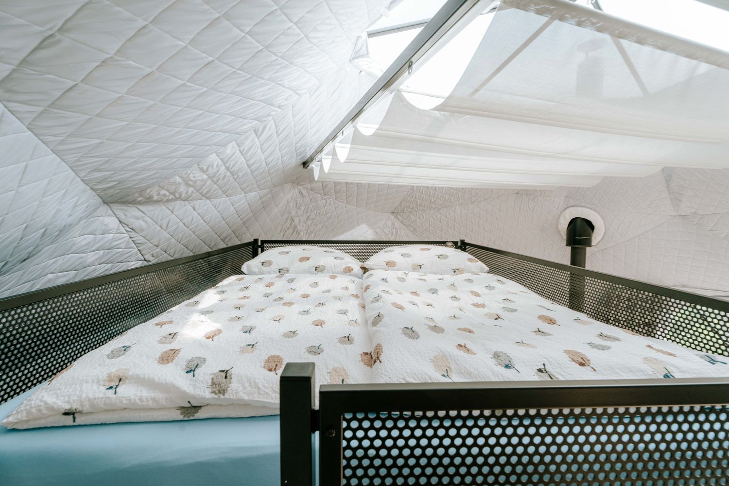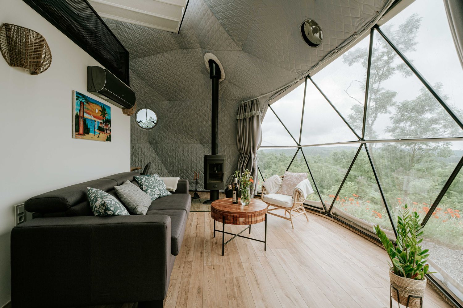 Uvnitř najdete pohodlné vybavení, plně vybavenou kuchyňku a moderní koupelnu pro váš maximální komfort. Po celý den můžete relaxovat v naší vířivce nebo sauně, které jsou k dispozici pro vaše pohodlí a relaxaci.
