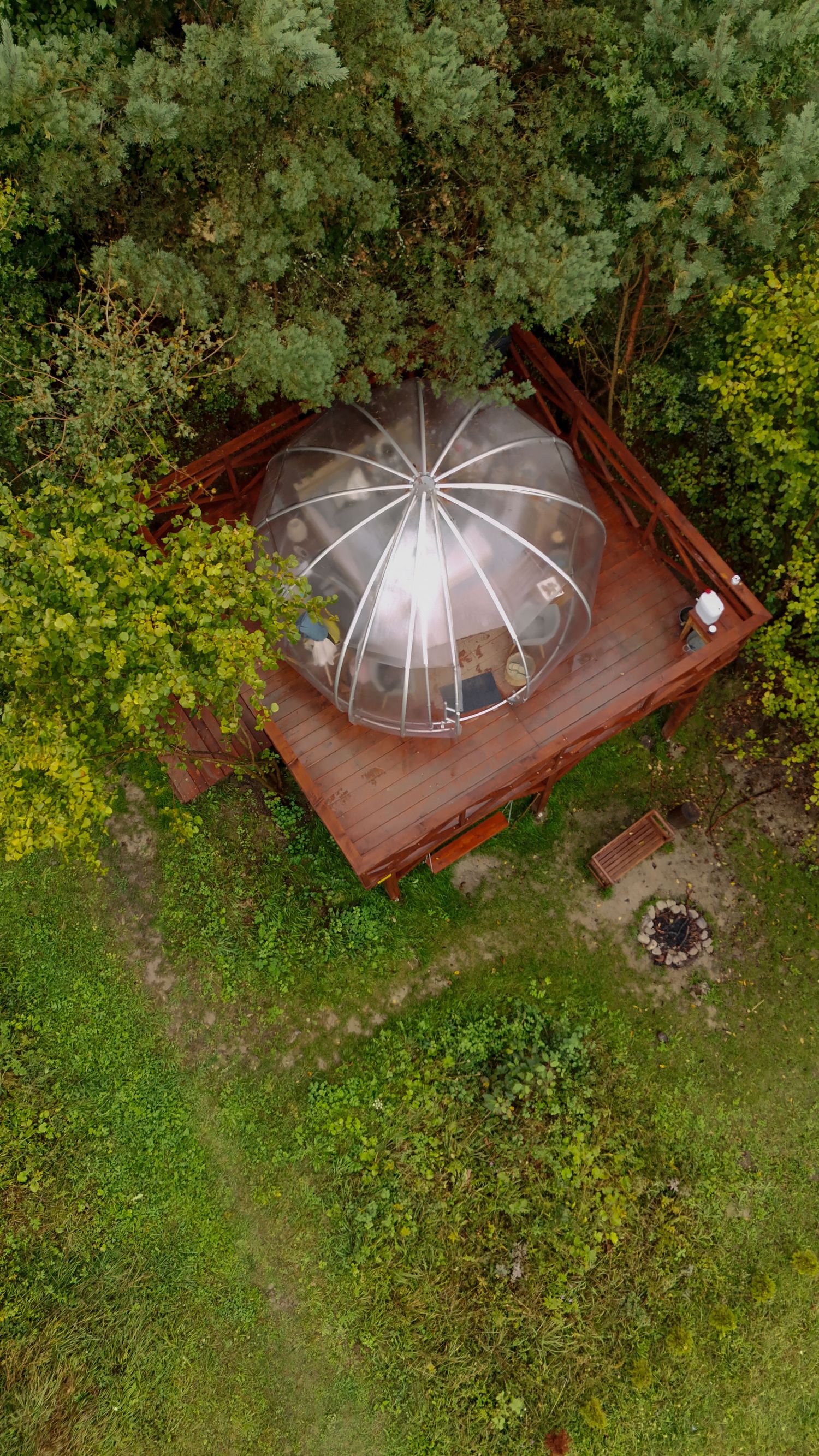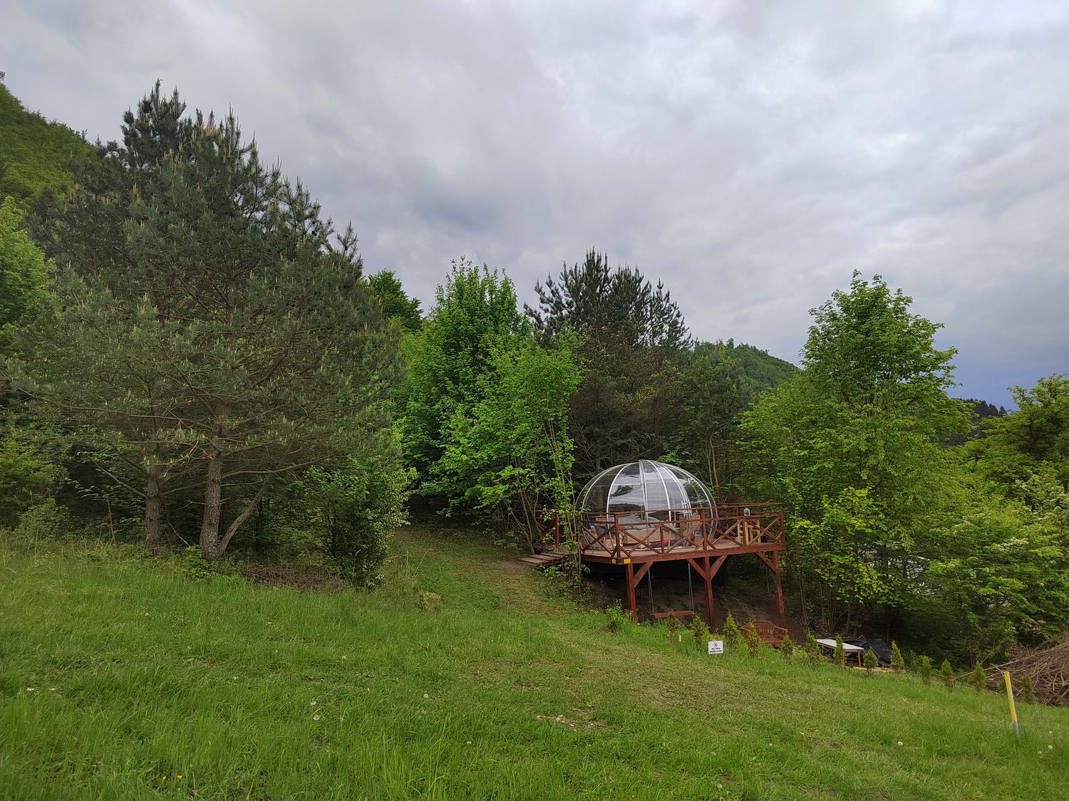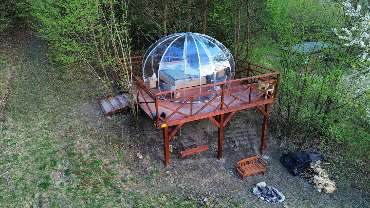 Ubytování není připojeno na elektřinu ani vodu, což je záměr, který umožňuje prožít noc v přírodě trochu jinak než v běžném ubytování. Venku je k dispozici ohniště pro večerní posezení a jednoduchá latrína. Parkování se nachází přibližně kilometr od kopule, poslední část cesty tak vede pěšky přes okolní krajinu.