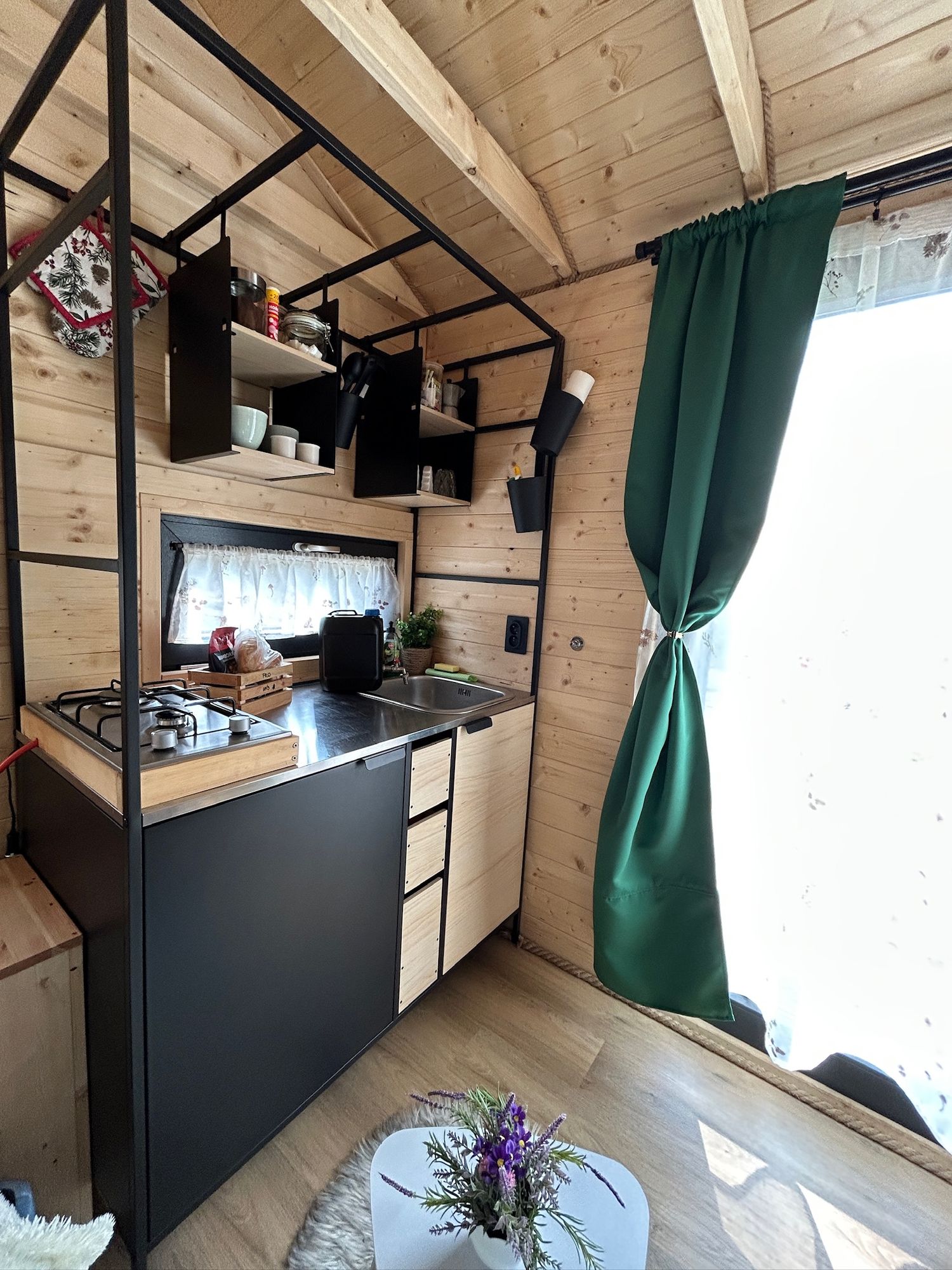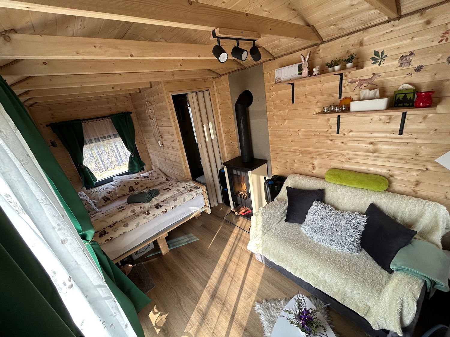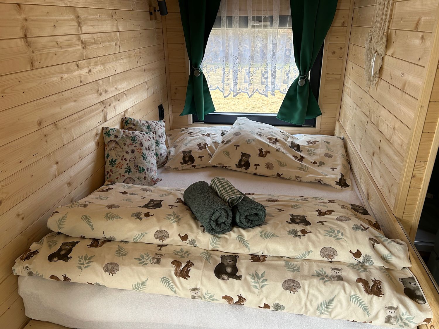 Lesní pohádka je vybavena vším, co potřebujete k pohodlnému pobytu. Najdete zde plně vybavenou kuchyňku, malinkou lednici, nádobí, základní potraviny a drobnosti k přípravě snídaní (džem, pečivo). V koupelně je sprcha a toaleta. Pro vaši zábavu jsou připraveny hry a další drobnosti. A pro chvíle odpočinku poslouží útulná pohovka. V letním období nechybí ani venkovní posezení s grilem, například pro večerní posezení pod hvězdami. V Lesní pohádce Batňovice bude připravena voda v barelech, malé, ale dostačující sprchové čerpadlo, chemické WC a rozvody elektřiny na 12V ⚡ (elektřina je určena ke svícení a nabíjení slabých zařízení jako např. mobilní telefon - k tomuto jsou určeny redukce na náš domek). V zimním období je vždy dostatek dřeva pro zahřátí🔥.
