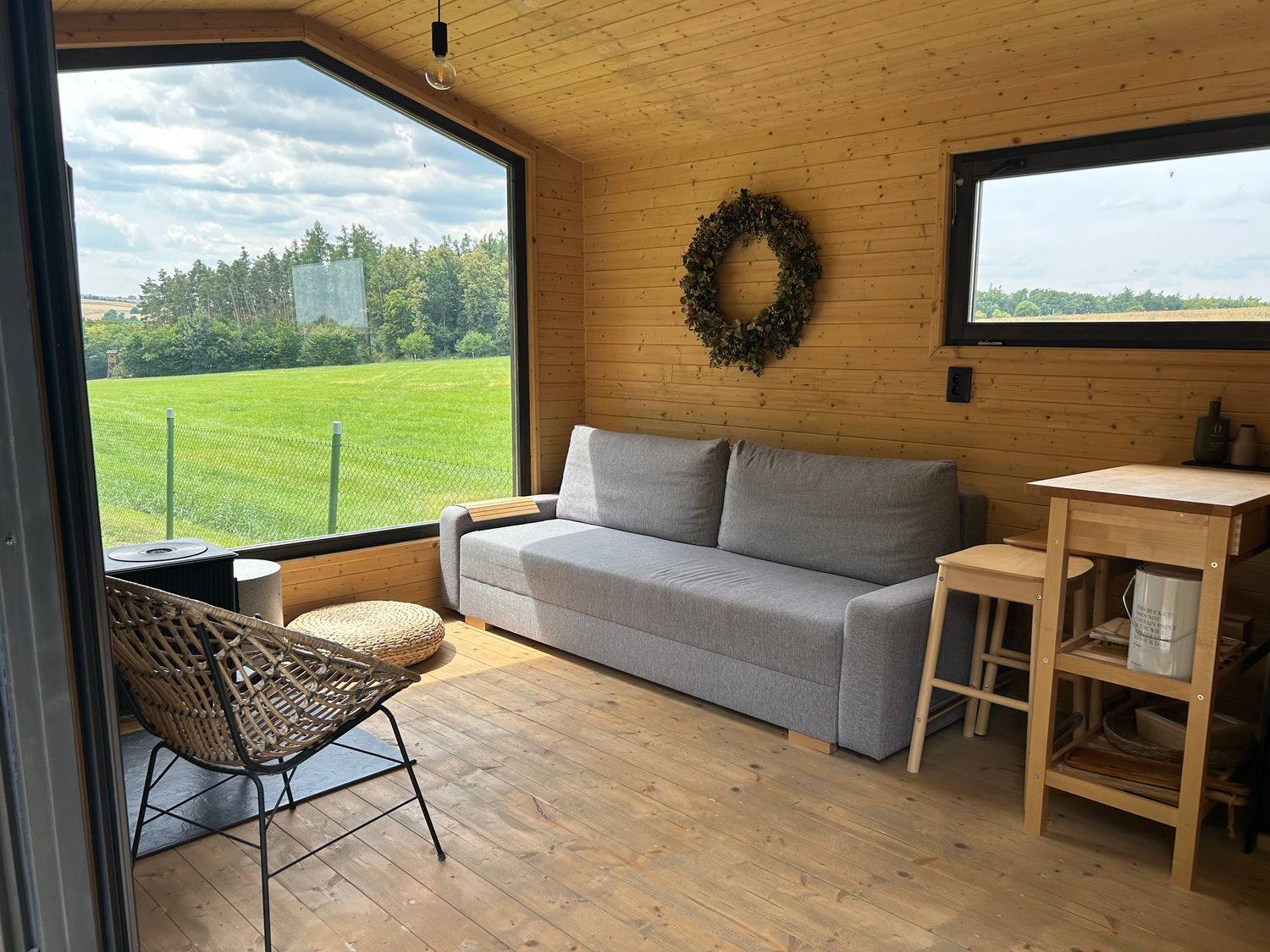 Tiny house Březina nabízí útulné a klidné ubytování v přírodě nedaleko Lán. Moderní, ale zároveň přirozeně působící interiér zahrnuje pohodlné spaní, obytný prostor s posezením a plně vybavený kuchyňský kout. Součástí domečku je koupelna se sprchou a WC, v chladnějších měsících vytápěná kamny na dřevo. Ubytování funguje v offgrid režimu se solárními panely, proto prosíme o šetrné zacházení s vodou a energií. Ideální místo pro zpomalení, odpočinek a společné chvíle v tichu přírody.