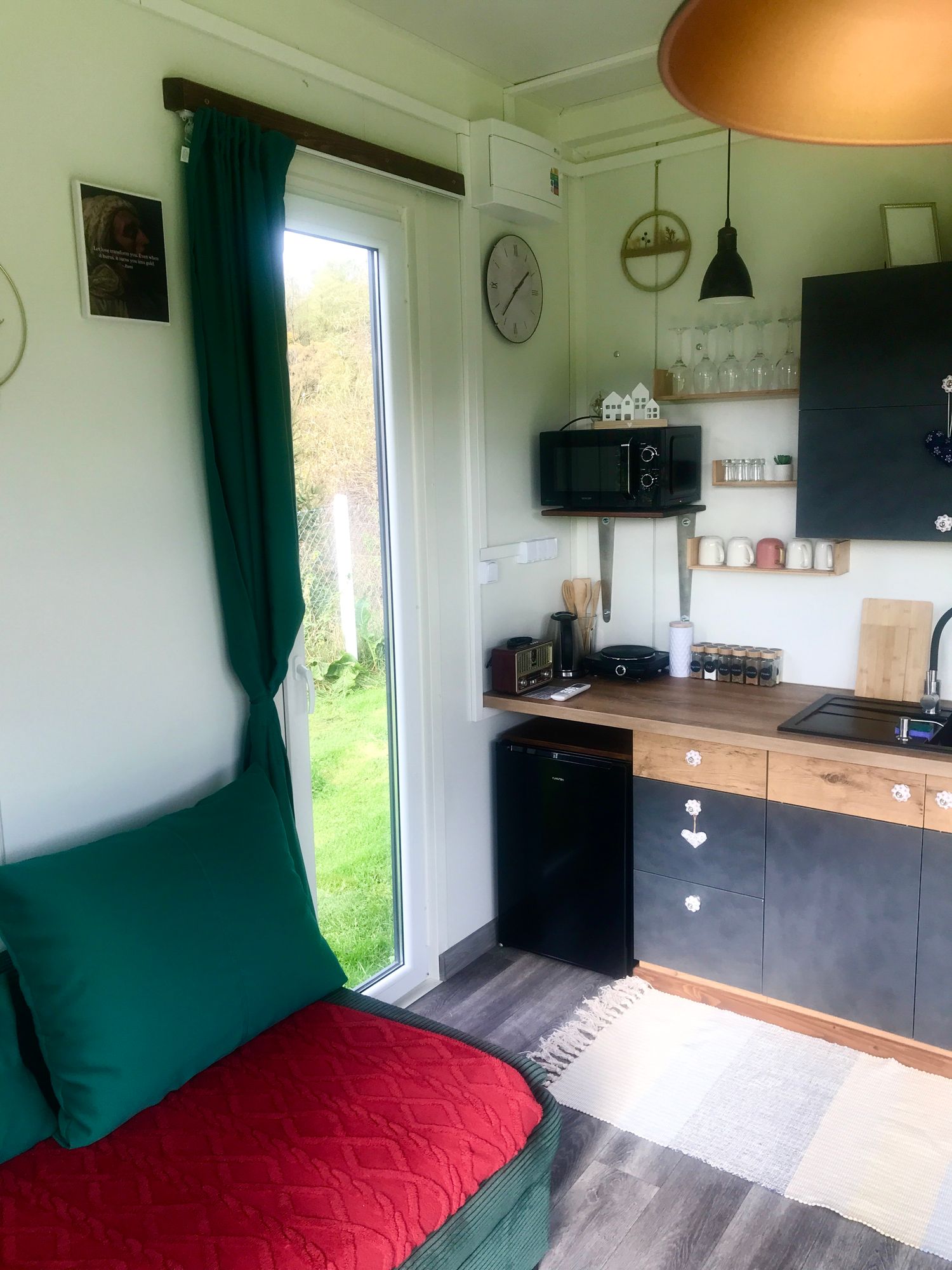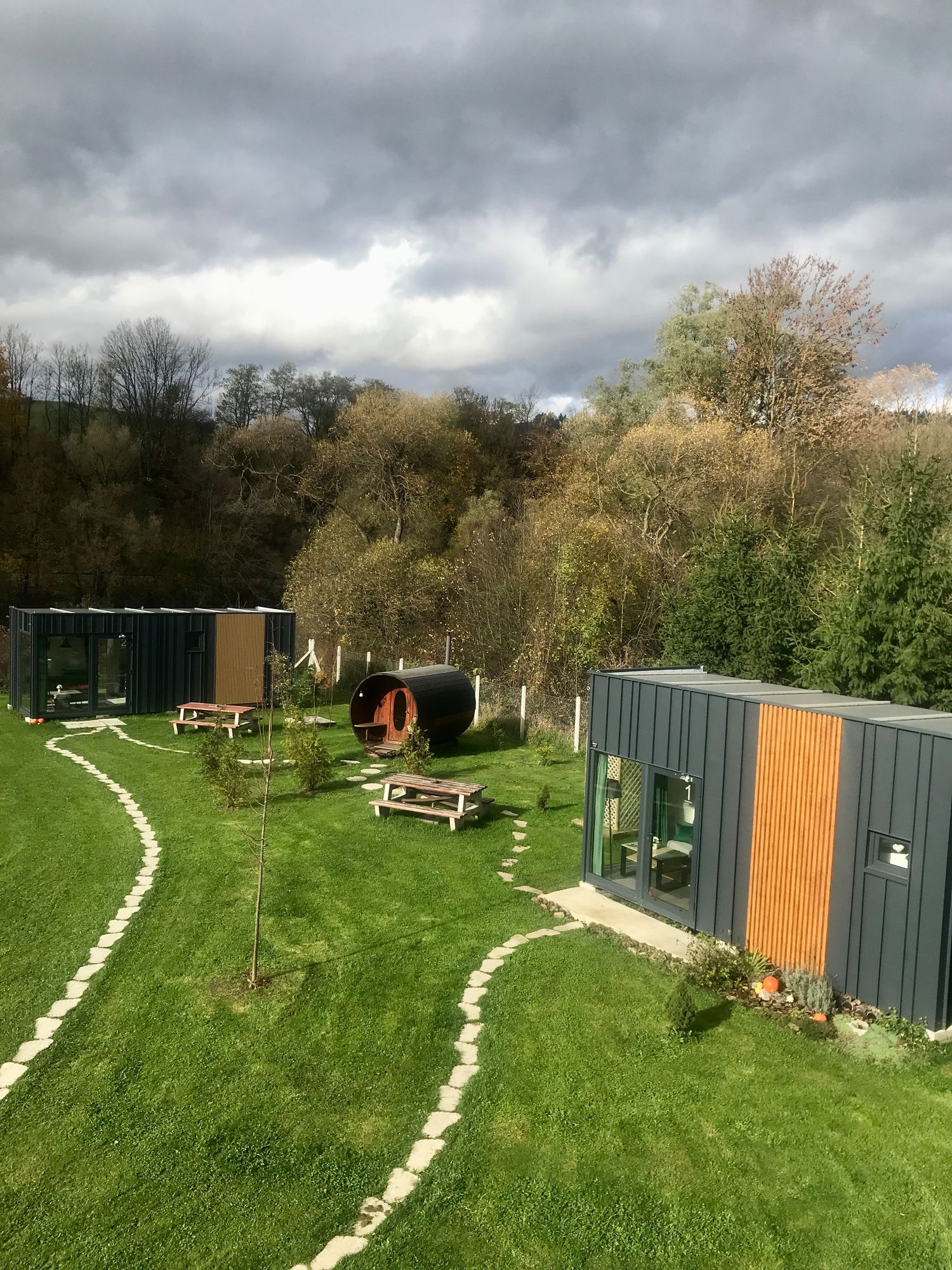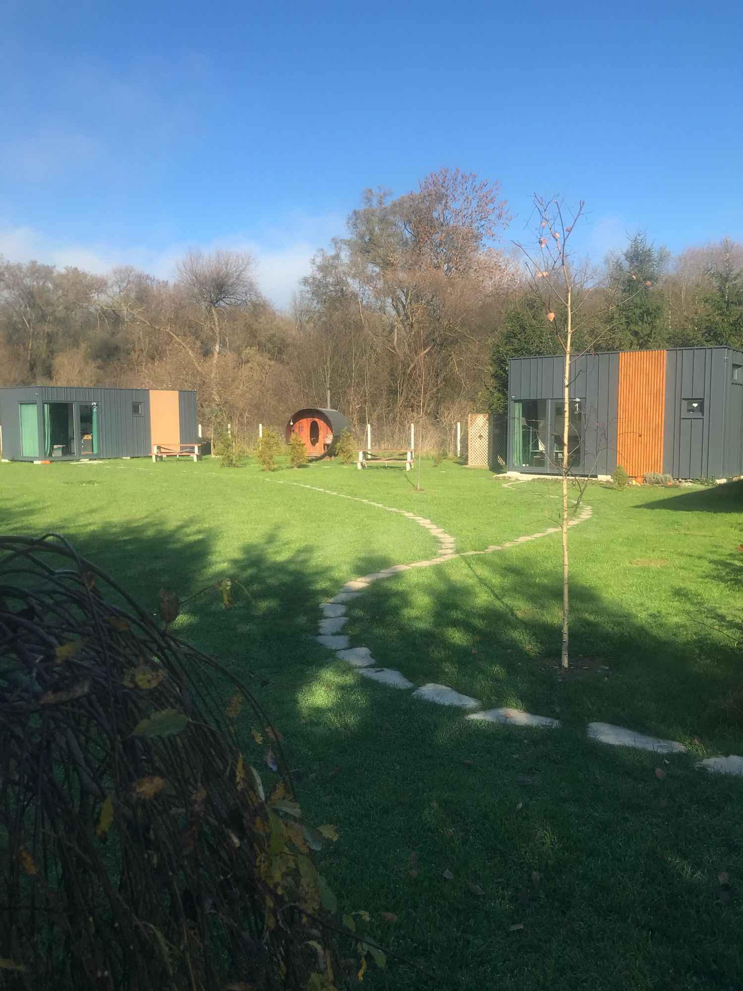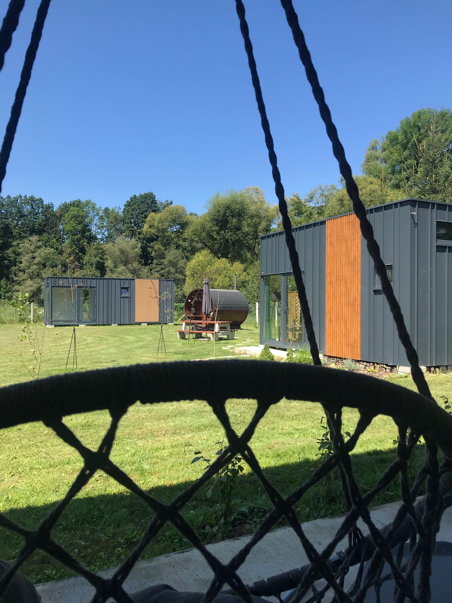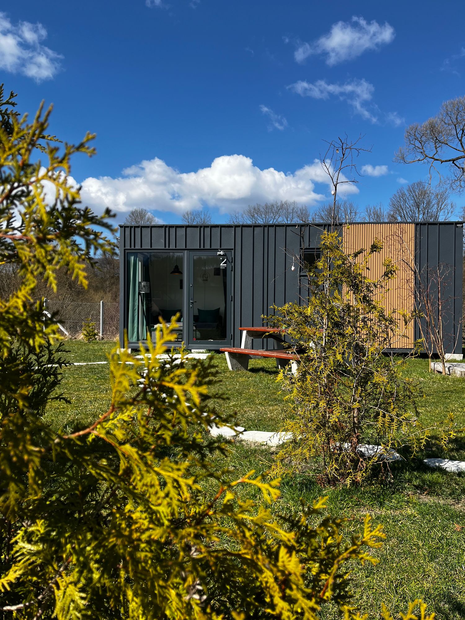 Zvuk řeky, která protéká hned za domem, je tím, co definuje celý pobyt v TinyHouses & Garden RIVER. Právě voda zde vytváří atmosféru, kterou není potřeba nijak doplňovat.
