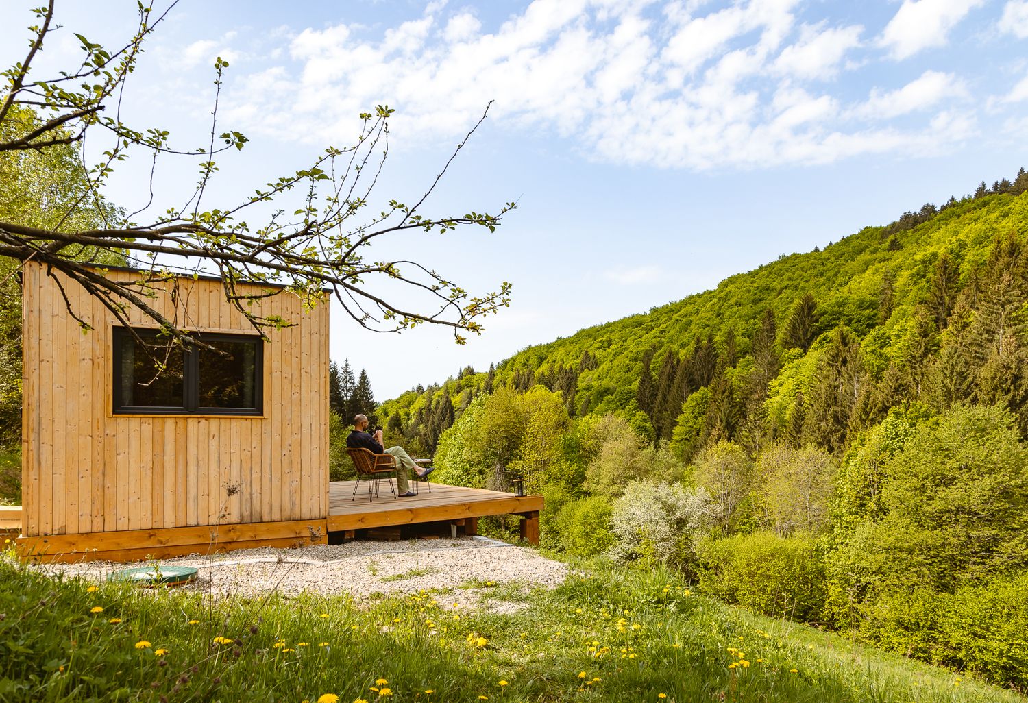 Je zasazený na okraji obce, v těsné blízkosti lesa a řeky, která vytváří přirozenou kulisu celého pobytu. Každý detail je navržen tak, aby nic nerušilo – jen ticho, zeleň a prostor být sám se sebou nebo s těmi, se kterými chcete sdílet čas.